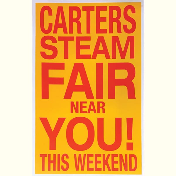 Carters Steam Fair is Near you! poster. 450 x 280mm, printed on matt paper. Item is sent in a poster tube ready for framing (frame not included in price). Limited stock available.