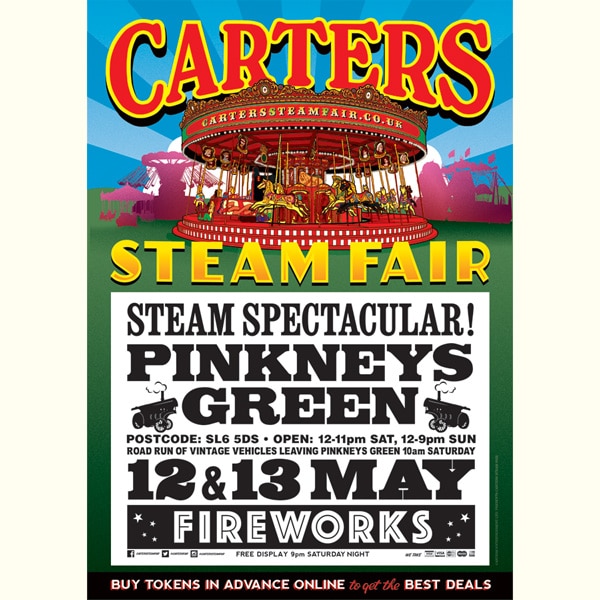 Carters Steam Fair’s Special Edition Steam Spectacular at Pinkneys Green poster. 595 x 421mm, printed on glossy paper. Item is sent in a poster tube ready for framing (frame not included in price). Limited stock available.