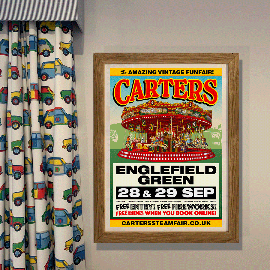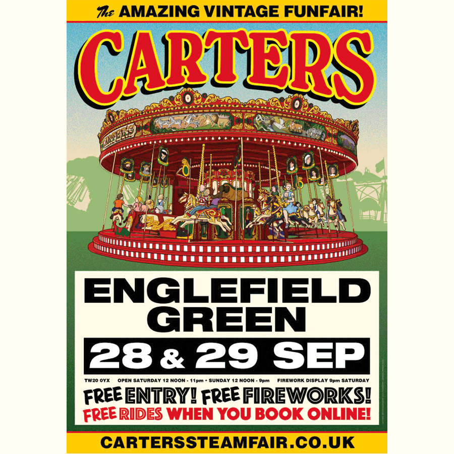 Carters Steam Fair, The Green, Englefield Green poster. Measuring 420 x 595 mm, printed on gloss paper.