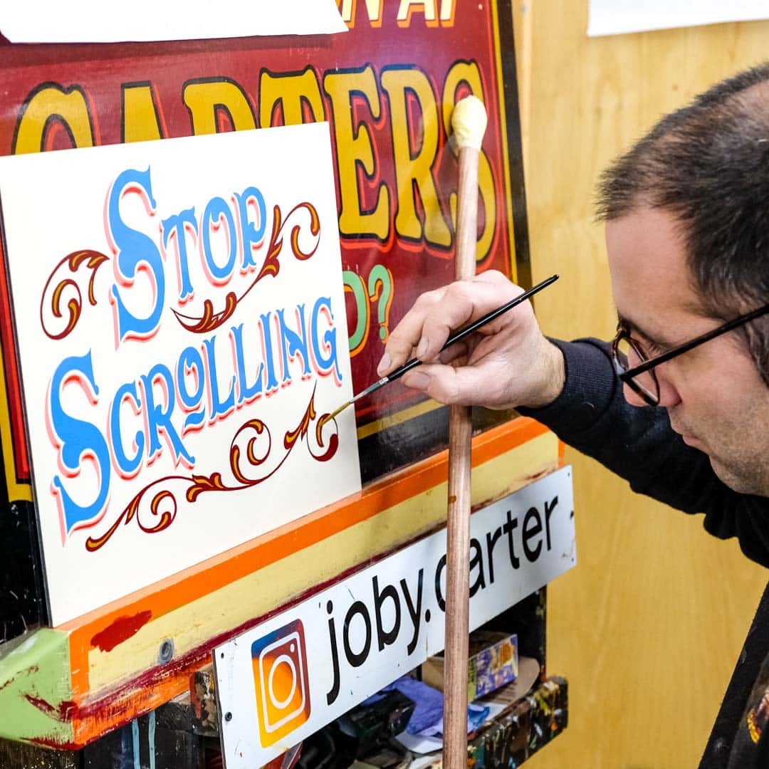 This one day course is for anyone that has already completed Joby’s 5 day signwriting course or anyone who has already gained significant experience in the field of signwriting.