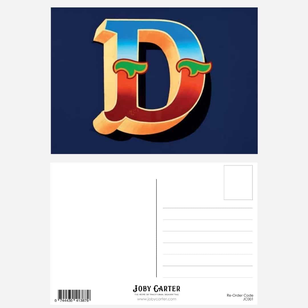 Celebrate the golden age of fairground lettering with Joby’s Hope Alphabet Postcards. Beautifully reproduced from the original hand-painted A-Z collection inspired by the iconic work of fairground signwriter Chris Hopes. Each postcard captures rich detail, bold craftsmanship and timeless decorative style of the original artwork in an affordable, collectable format. Perfect for sending, framing, gifting or spelling out meaningful initials and words.