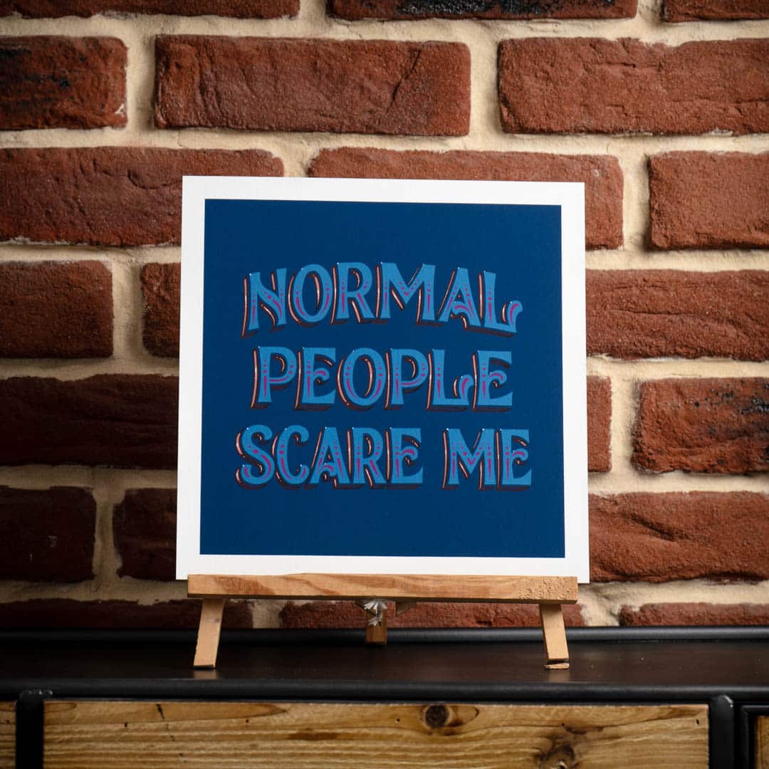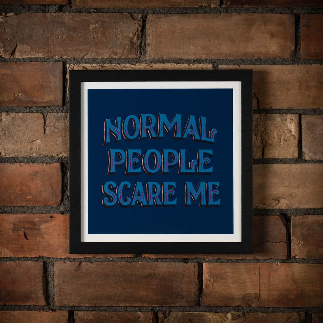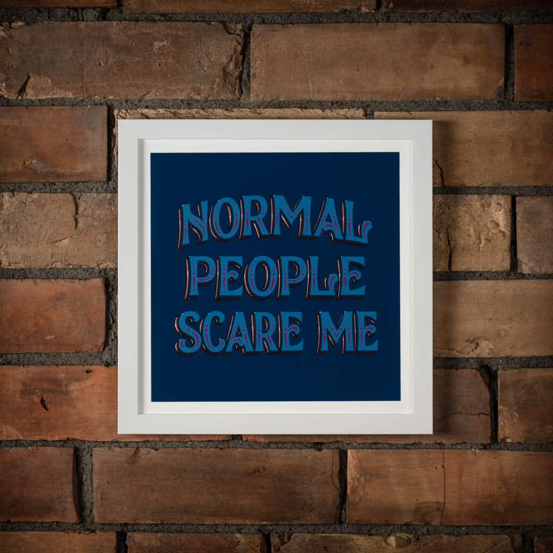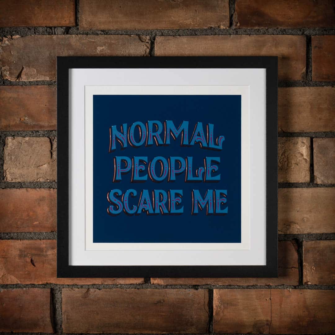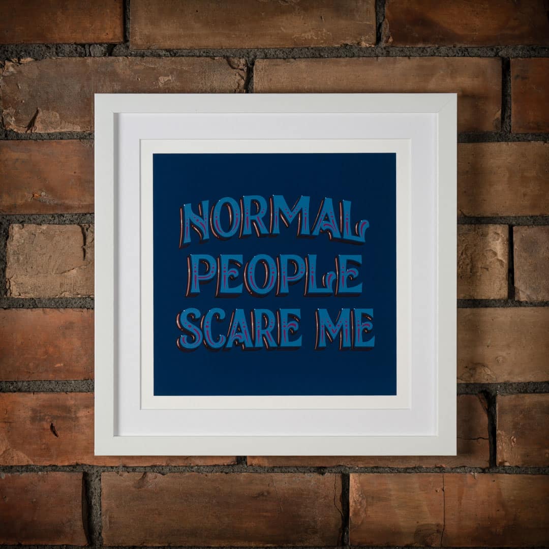This fine art print features hand painted lettering (Normal People Scare Me) which was drawn and painted by Joby Carter in his UK workshop using traditional signwriting techniques. There are no computers or modern shortcuts used in Joby’s signwriting workshop.