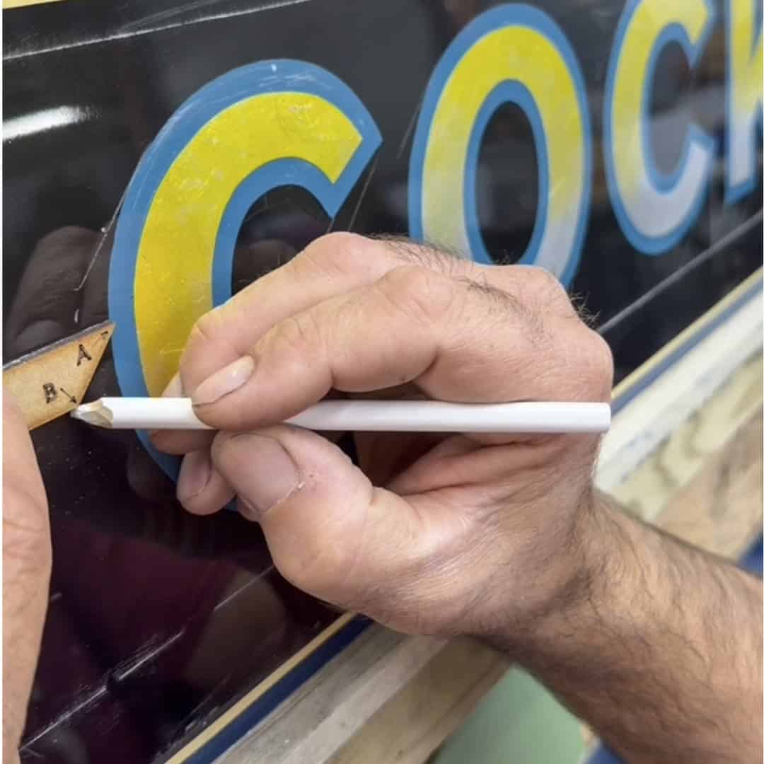 Having noticed that many of his signwriting students struggled with creating accurate three-dimensional effects on their lettering, Joby designed an exclusive tool to help.