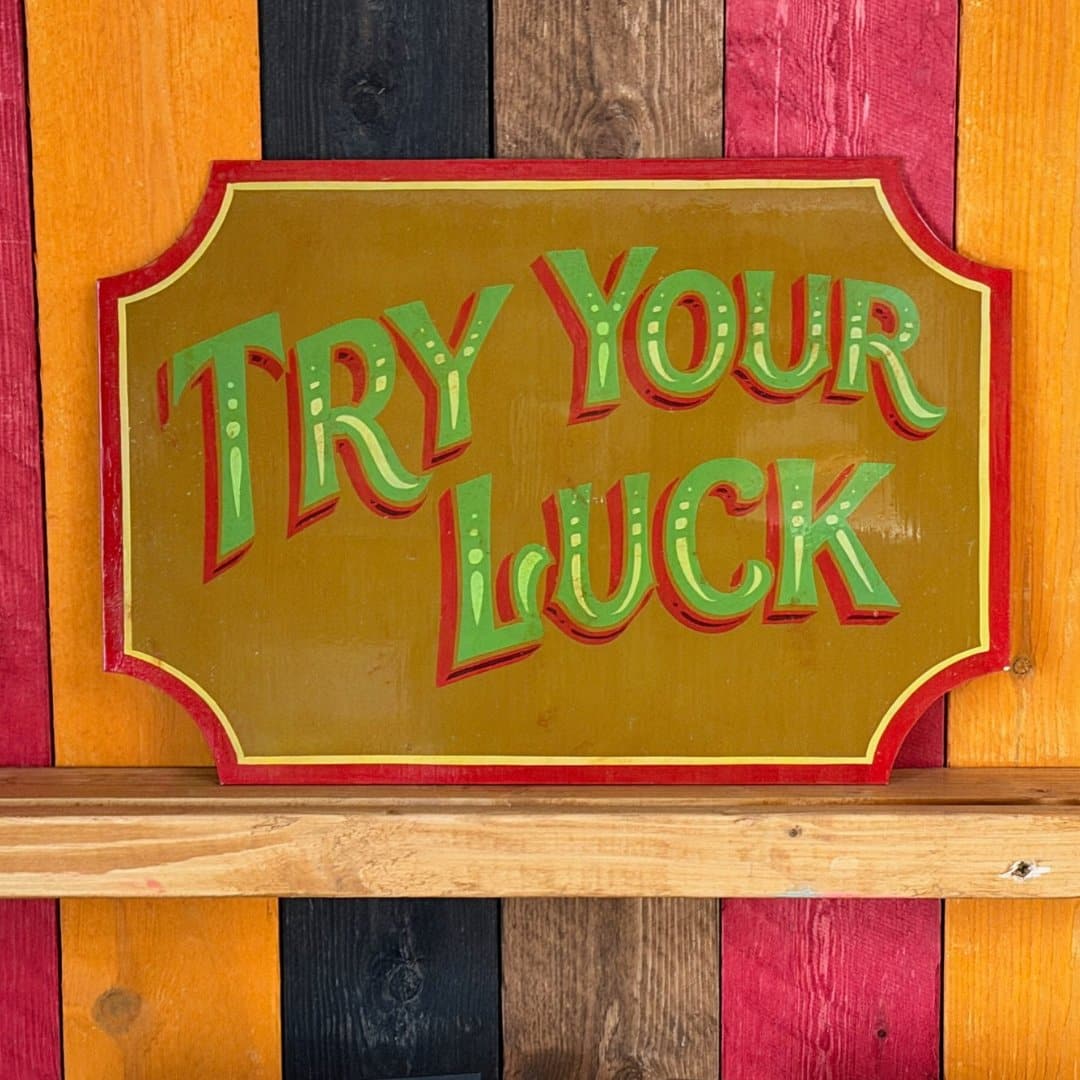 ‘Try Your Luck’ this hand-painted sign, was inspired by Jobys days at Carters Steam Fair.